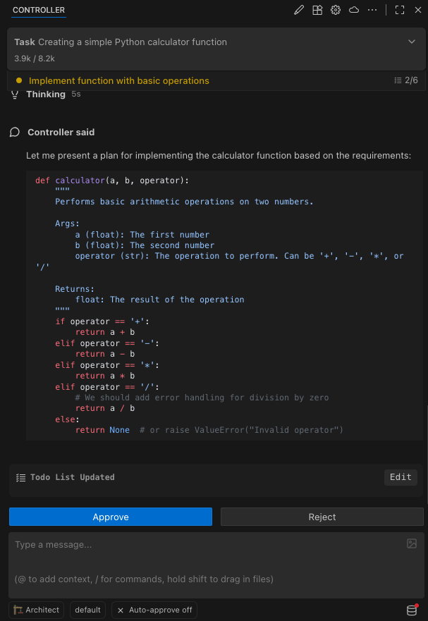 The Controller chat interface is your primary way of interacting with it. It's located in the Controller panel, which you can open by clicking the Controller icon () in the VS Code Activity Bar.